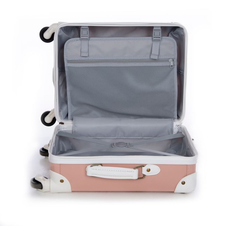 Gorgeous suitcase type cabin bag with prints in the form of a city on a light pink surface. Perfect to pack the child's things for the trip, or maybe use as a toy box? With divider between top and bottom (practical when the bag is opened) and a small compartment in fabric on one side of the separator, convenient for small things. Made of eco-friendly materials: PU (polyurethane / vegan leather) and PP (polypropylene), free from PVC!